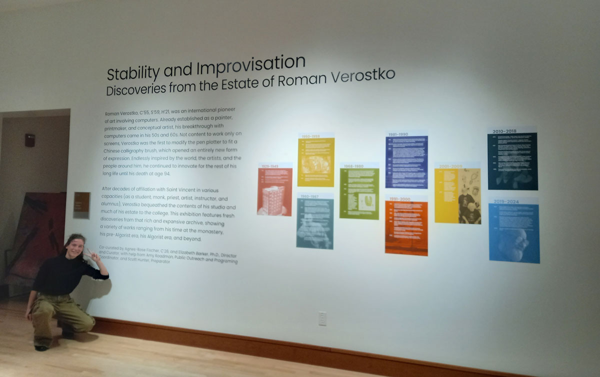 After decades of affiliation with Saint Vincent in various capacities (as a student, monk, priest, artist, instructor and alumnus), Verostko bequeathed the contents of his studio and much of his estate to the College.