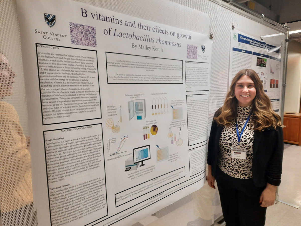 LATROBE, PA – A pair of Saint Vincent College students majoring in biology presented part of their capstone projects late last year at the annual Allegheny Branch of the American Society of Microbiology (ABASM) conference hosted at Pennsylvania Western University’s campus in the borough of California.